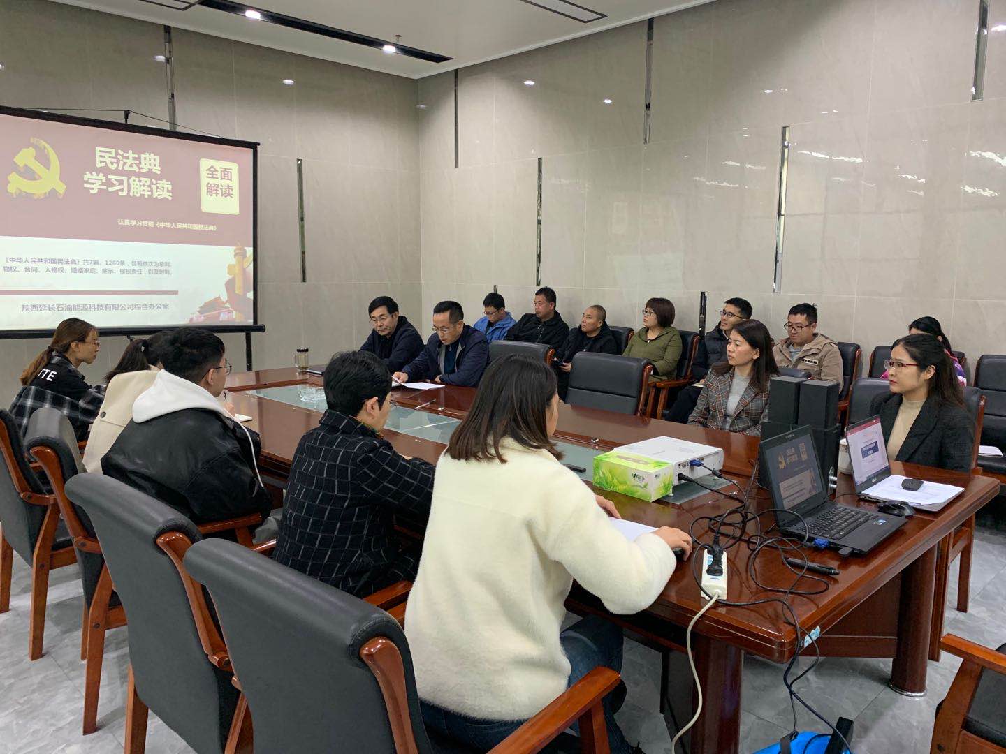 10月下午15日,能源科技公司在会议室举办了《中华人民共和国民法典》培训学习,培训由陕西睿和律师事务所屈硕律师讲授,公司领导及员工参加了学习。